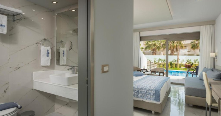 Vantatris Blue este format din 4 clădiri cu 14 camere fiecare. Camerele premium cu piscine private sunt situate la parter.