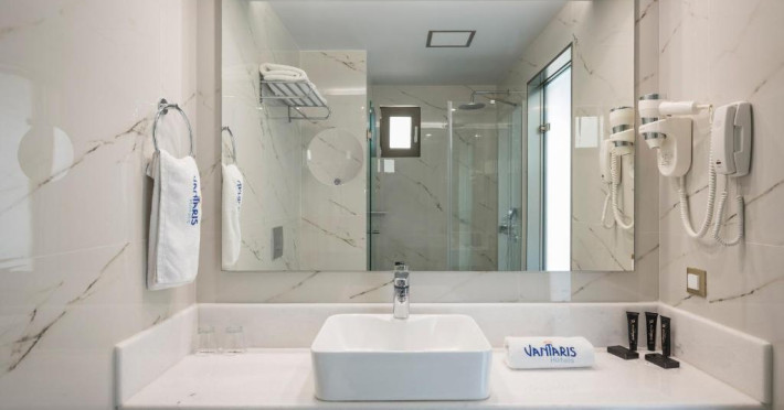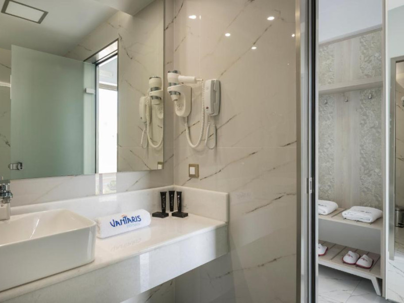 Oaspeții de la Vantaris Blue pot folosi toate facilitățile Hotelului Vantaris Luxury Beach Resort. Ei iși pot lua micul dejun și cina in restaurantul Vantaris Luxury Beach Resort, check-in & check-out se fac și la recepția hotelului Vantaris Luxury Beach Resort.
