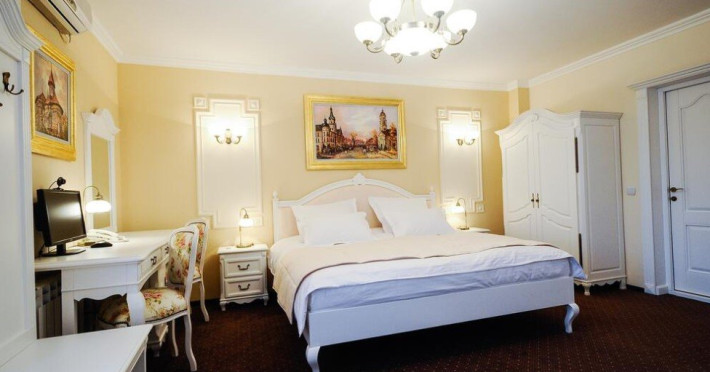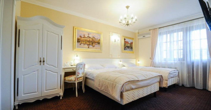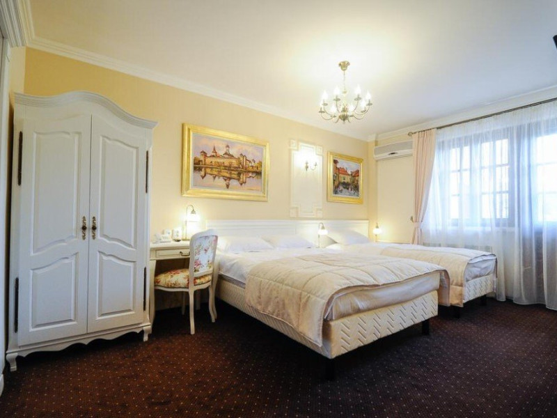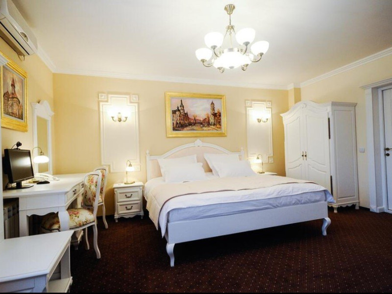 Facilitatile pensiunii - Parcare proprie, privata, supravegheata si inchisa; - Centrala termica proprie; - Camere nefumatori; - Salon pentru mic dejun; - Sal de conferinte / intalniri de afaceri / training-uri; - Acces la fax, copiator si imprimanta; - Acces la computer la receptie; - Fitness; - Saun; - Cabinet medical cu medic primar la orice ora; - Localizarea ultracentral a pensiunii face ca toate institutiile, cele mai bune restaurante si principalele obiective turistice din municipiul Suceava sa se gaseasc in apropiere; - Situarea pensiunii intr-o zona verde si linistita poate insemna plimbari prin parcul din apropiere, aer curat si somn linistit si odihnitor.