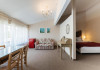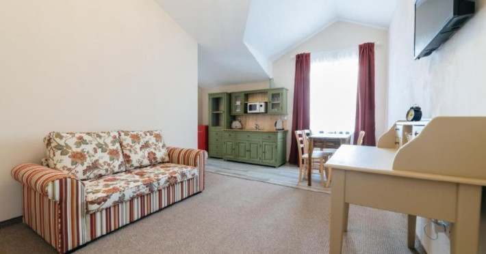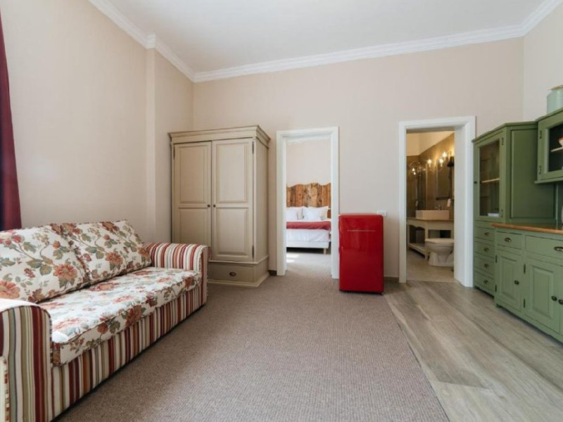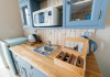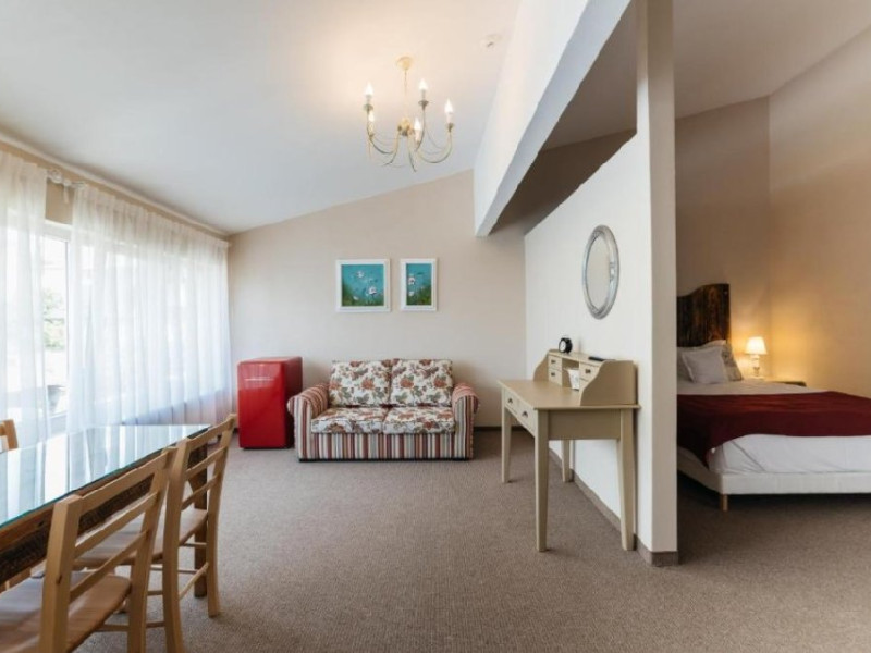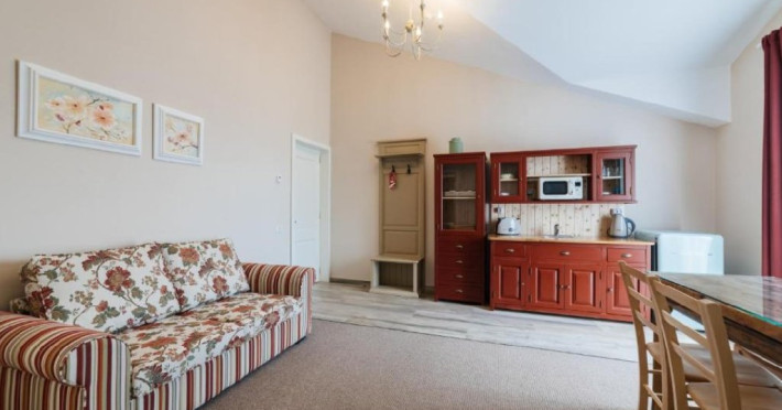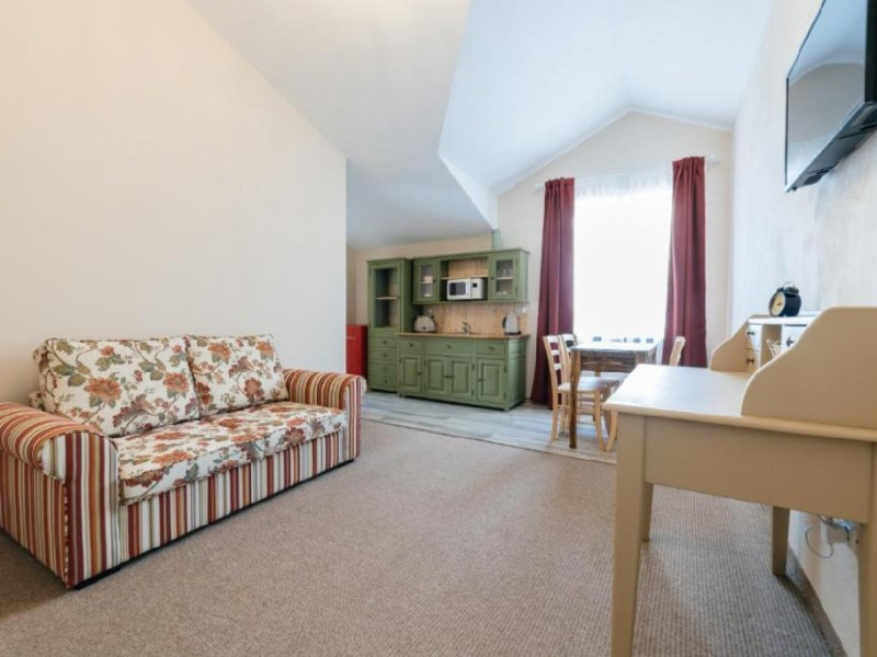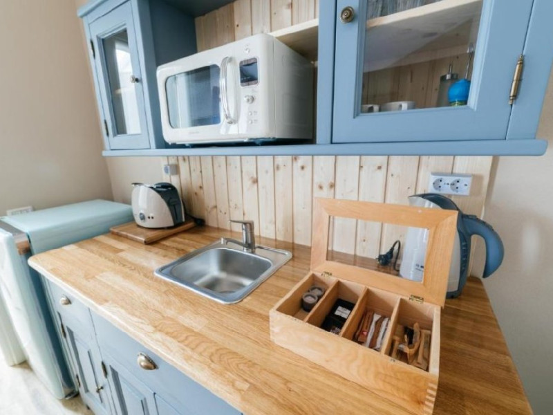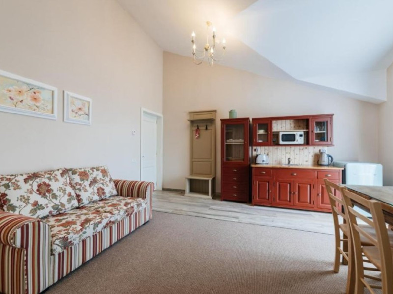 Alte dotari camere : Bucatarie complet utilata in fiecare apartament cu frigider, plita electrica, prajitor paine, fierbator electric, farfurii si tacamuri, vase de gatit si ustensile, consumabile pentru bucatarie, facilitati pentru ceai si cafea;