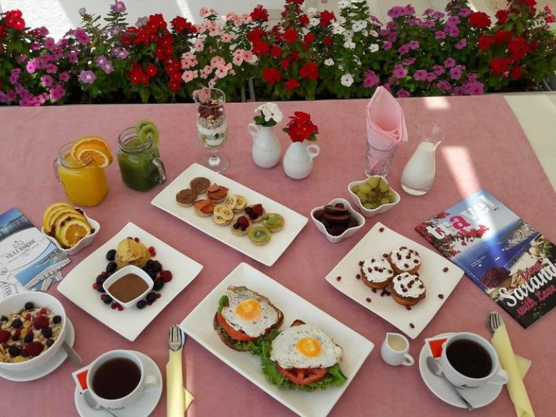 Localizare: pe plaja, la 700 metri de centru. Descriere: O constructie din 2014, cu 13 duble standard, 1 tripla si 8 apartamente, cele mai multe cu balcoane walkout si vedere de neegalat la Marea Ionica. Facilitati hotel: Restaurant, bar, terasa pe plaja, parcare privata gratuita, seif la receptie, frizerie, servicii spalatorie, internet Wi-Fi gratuit, inchirieri biciclete. Dotari camere: Aer conditionat, TV, frigider, plasa tantari, baie cu cada sau dus, uscator de par, articole de toaleta, uscator de haine, balcon, ferestre izolate fonic. Web: www.vilaebardhe.com