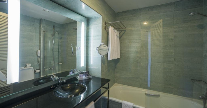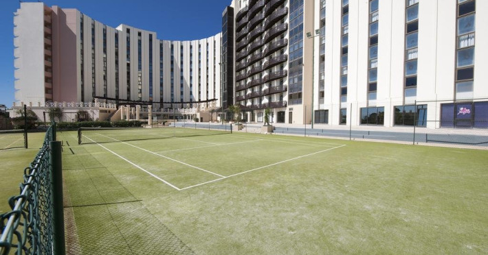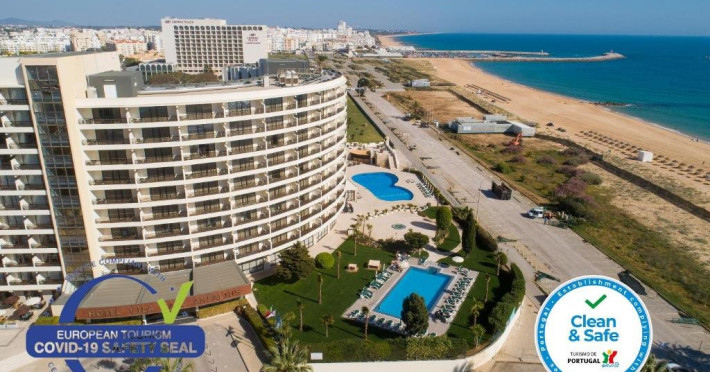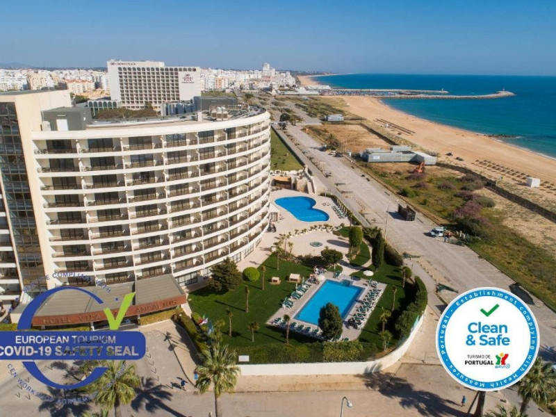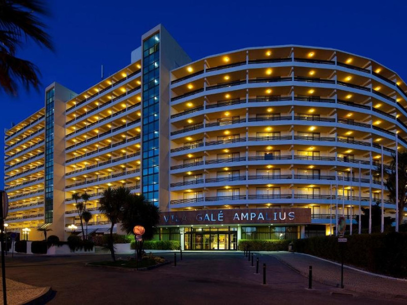 Descriere HOTEL VILA GALE AMPALIUS: Un hotel de lant ce beneficiaza de numeroase servicii pentru petrecerea timpului liber si de o locatie excelenta. Tip masa: Mic dejun/demipensiune Localizare HOTEL VILA GALE AMPALIUS: Hotelul este situat la 5 minute de plaja si de portul din Vilamoura. Plaja: Cea mai apropiata plaja de VILA GALE AMPALIUS, situata la 5 minute de mers, este plaja cu nisip fin si intrare lina in apa. Sezlongurile si umbrelele sunt contra cost. Plaja este publica. Dotari camere: Hotelul dispune de 357 camere standard, 54 junior suites si 30 senior suites. Toate camerele standard sunt dotate cu aer conditionat, telefon, TV satelit, radio, minibar, uscator de par, seif. Facilitati HOTEL VILA GALE AMPALIUS: Hotelul beneficiaza de restaurant, baruri, piscina exterioara pentru adulti si copii, health club (piscina dinamica, jacuzzi, sauna, baie turceasca, masaj si tratamente corporale, sala de gimnastica), salon de joaca, kids club, secretariat pentru minigolf, teren de tenis, coafor, magazine, parcare. Clasificarea agentiei: 4* Web: www.vilagale.pt