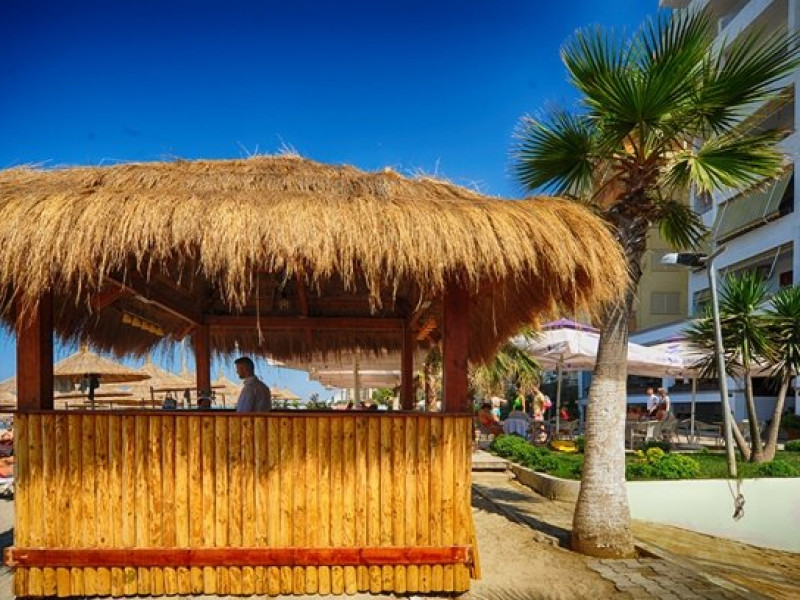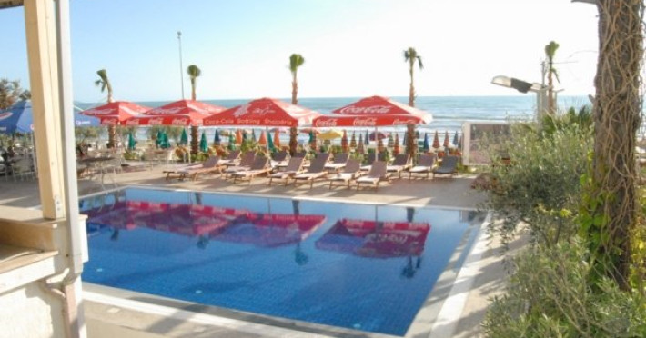 Localizare: hotelul se bucura de o pozitie privilegiata pe o plaja privata. Statia de autobuz se afla chiar langa hotel. Centrul orasului Durres se afla la 10 km, dar cel mai apropiat magazin este la 20 m de hotel. Portul pentru ferry este la 9 km, iar aeroportul Tirana la 35 km. Dotari camere: toate camerele sunt dotate cu aer conditionat, balcon, mini bar, TV, telefon, uscator de par, internet. Facilitati hotel: restaurantul hotelului serveste preparate mediteraneene, bar cu terasa. Plaja proprie pune la dispozitia turistilor sezlonguri si umbrelute. Hotelul dispune si de o parcare proprie si internet. Web: www.hotelpalma.al