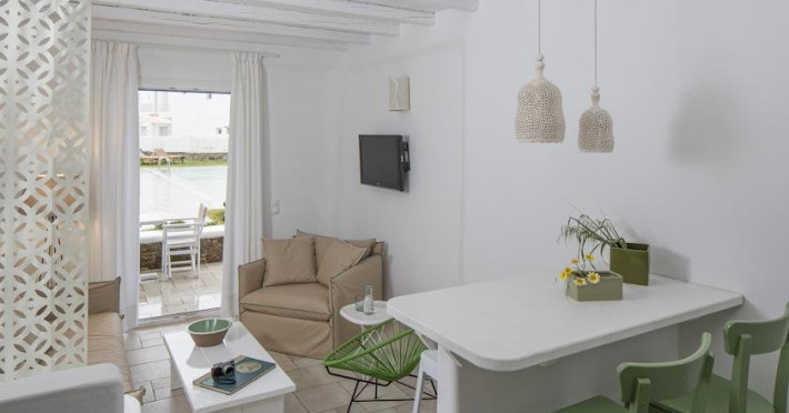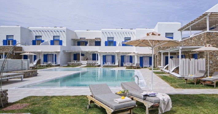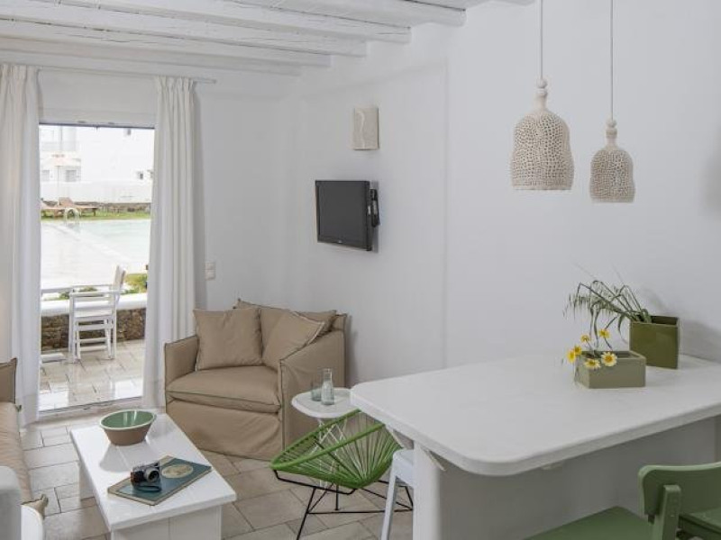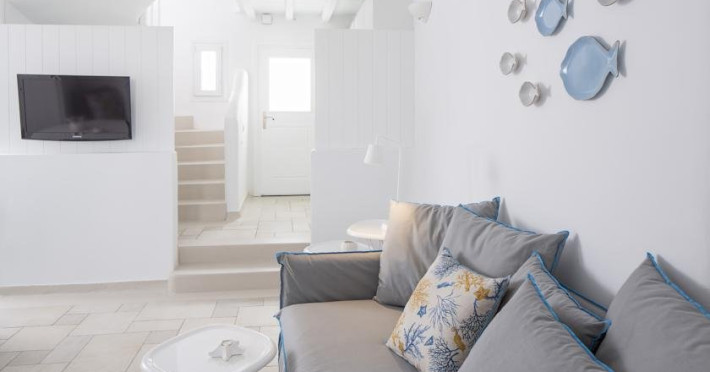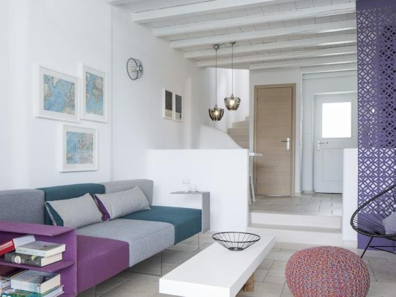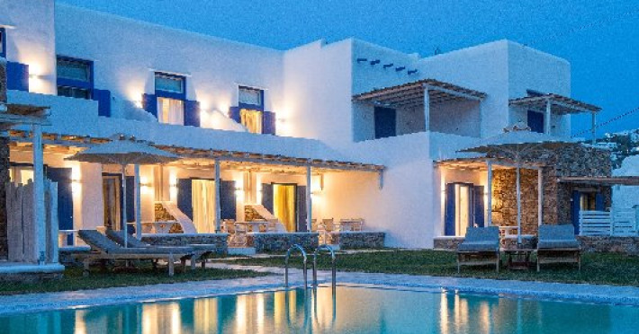 Descriere: Oferind o piscina si o terasa la soare pavata cu piatra, Villa Del Sol este construita in stil cicladic si se afla la 50 de metri de plaja cu nisip Ornos din Mykonos. Ofera unitati de cazare in sistem self-catering, cu acces Wi-Fi gratuit si un balcon cu vedere directa sau partiala la Marea Egee. Localizare: Villa Del Sol se afla la 3 km de orasul cosmopolit Mykonos si la 6 km de portul din Mykonos Dotari camere: Impartite pe 3 niveluri, apartamentele de la Villa Del Sol au pardoseala de gresie, plafon cu grinzi si mobilier bine ales. Fiecare unitate de cazare cu aer conditionat este formata din doua dormitoare separate, o zona de relaxare si o bucatarie bine utilata. Exista un seif si un televizor LCD cu canale prin satelit si prin cablu. Baia privata include uscator de par. Facilitati hotel: piscina, umbrele si sezlonguri, prosoape de plaja, wi-fi in zonele publice, restaurant, mini market, parcare, curatenie zilnica, serviciu inchiriere masini Website: www.villadelsolmykonos.com