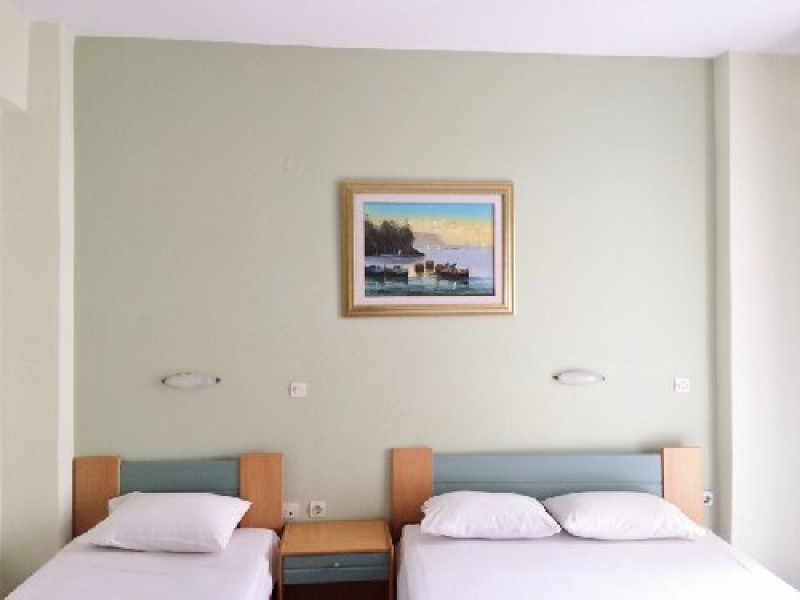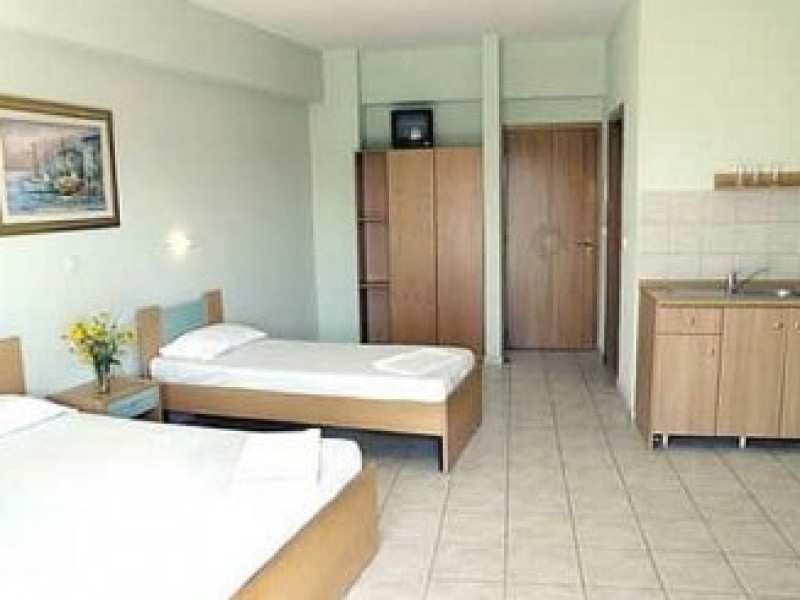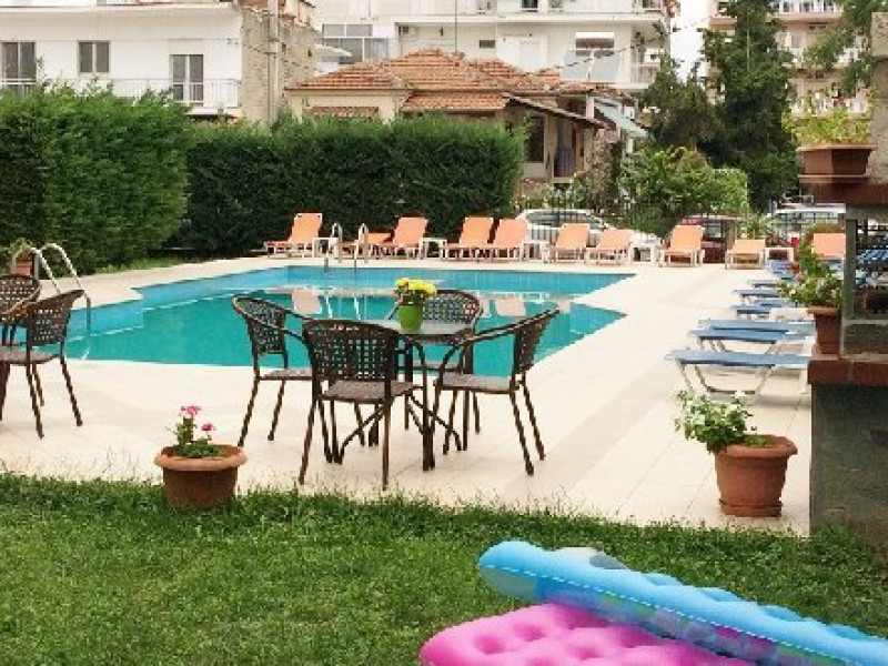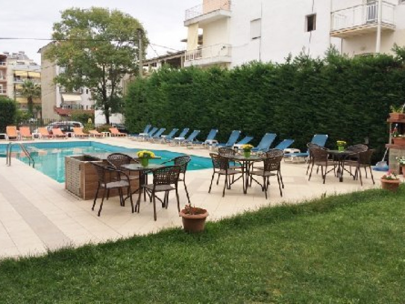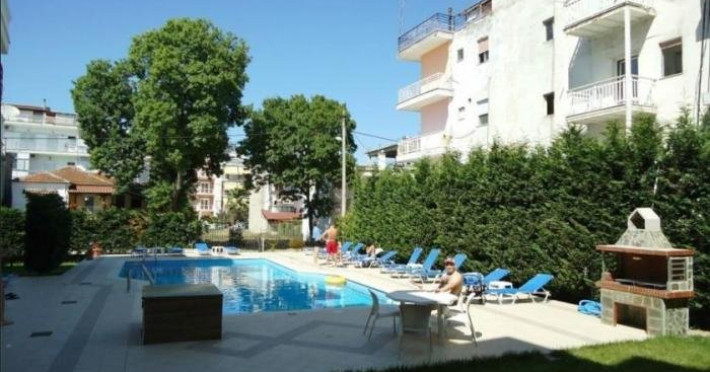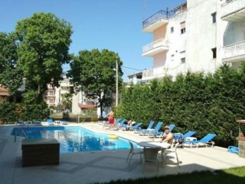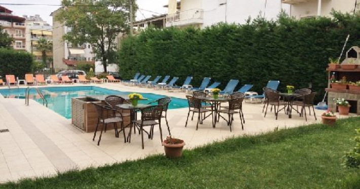 Descriere: in centrul statiunii, vis-a-vis de magazinul Lidl. Localizare: la 200 m de plaja. Facilitati hotel: piscina, curte cu spatiu verde, receptie, bar, camera de bagaje, grill, lift, internet wireless gratuit. Serviciile de masa se asigura la restaurant Ipiro din apropiere. Dotari camere: camerele sunt spatioase si moderne, tip studio pentru minim 2 maxim 3 persoane dotate cu: TV, aer condionat contra cost (5 euro/camera/zi), chicineta complet utilata, frigider, baie proprie cu dus, balcon, internet WI-FI.