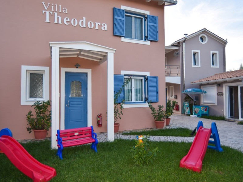 Localizare: Villa Theodora este un complex nou construit cu studiouri si apartamente situat in Nikiana, la 9 km de oraselul Lefkada. Ofera studiouri si apartamente moderne, cu seif, AC si TV cu ecran plat. Facilitati camere: Toate studiourile si apartamentele, sunt dotate cu AC, baie , balcon, bucatarie utilata complet, frigider si cuptor. Pagina web: http://villatheodora.gr/