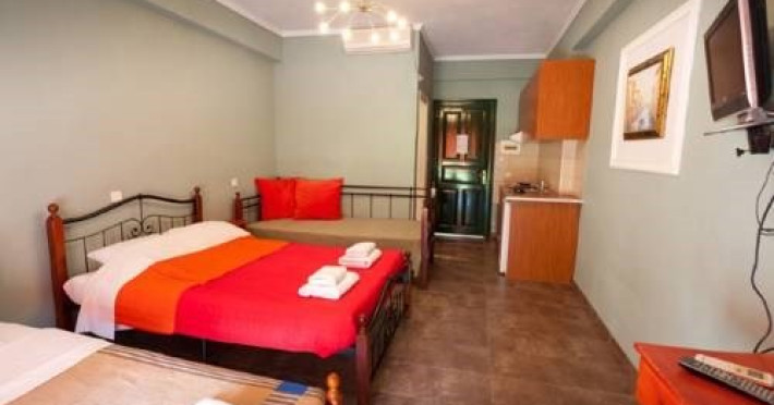 Localizare: la 2 km de orasul Lefkada si 500 m de plaja Agios Ioannis. Facilitati hotel: parcare publica, wi-fi. Facilitati camera: selfcatering, cu minibucatarie utilata cu strictul necesar, frigider, baie cu dus, TV, AC, balcon sau terasa.