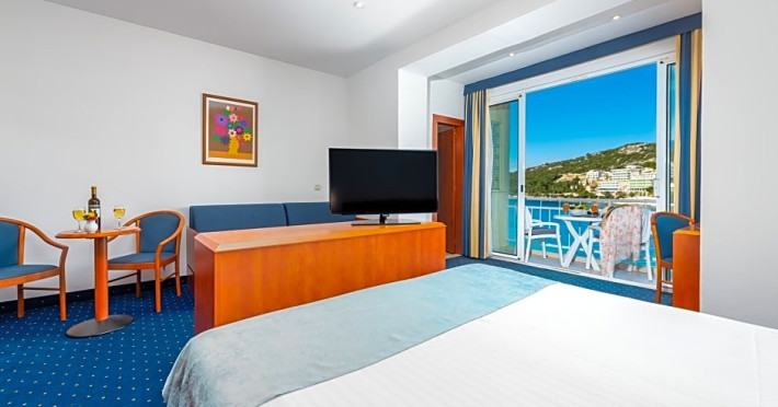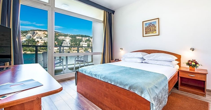 Descriere: Hotelul Vis de 3 stele din Dubrovnik, este locul ideal de vacanta pentru toti cei carora le place sa se relaxeze pe plaja. Localizarea pe malul Marii Adriatice cu apele albastre si limpezi ale Golfului Lapad, ii confera confort si farmec. Vederea Insulelor Elafiti la apusul soarelui va deveni una dintre cele mai pretuite imagini ale vacantei. Hotelul poate facilita diferite servicii, precum inchiriere de autoturisme, servicii de scufundari si tururi ale orasului cu un ghid profesionist. Pe promenada din Golful Lapad exista numeroase magazine, restaurante si cafe-baruri.