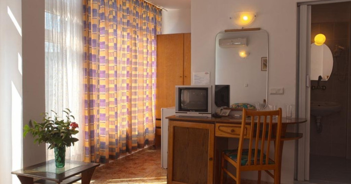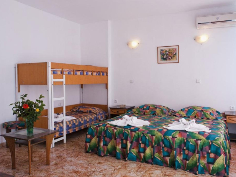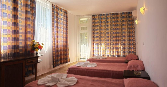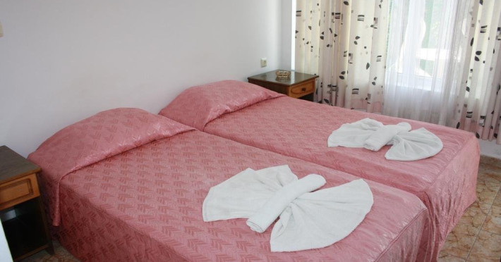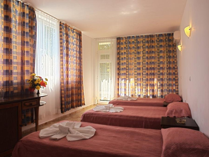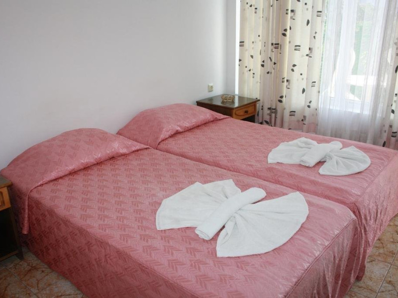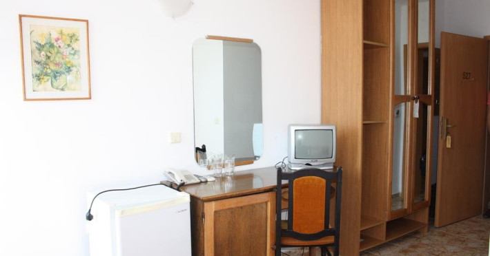 LOCALIZARE: in centrul statiunii, la 350 de metri de plaja. INFORMATII GENERALE: hotelul a fost construit in anul 1970 si renovat in anul 2009. CAPACITATE: 143 camere duble Facilitati: piscina exterioara, 2 cladiri, 11 etaje, 3 lifturi, seif la receptie (contra cost), conexiune la internet - wifi, sala de internet, schimb valutar, magazin, facilitati pentru persoanele cu dizabailitati, restaurant, meniu vegetarian, lobby bar, bar la piscina, biliard, tenis de masa, sala de sport, cabinet medical, fitness, masaj, centru de afaceri dotat cu o sala de conferinta. Facilitati pentru copii: meniu, piscina, teren de joaca. Camerele duble economice (cca. 12 mp): pat twin, fotoliu, vedere la parc, tv, baie dotata cu set cosmetice, telefon, toaleta.