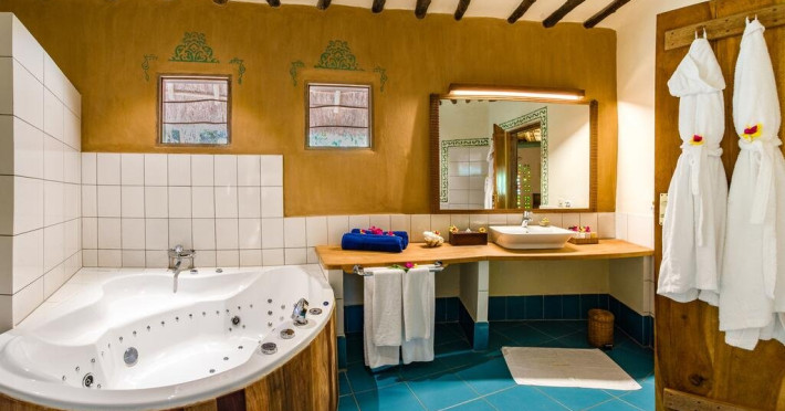 Localizare: Hotel Zanzi Resort de afla la malul Oceanului Indian, la 15 km de orasul istoric Stone Town si la 30 minute de mers cu masina de Aeroportul International Zanzibar. Facilitati hotel: Oaspetii pot savura mesele de mic dejun, pranz si cina in bungalou sau vila privata, la restaurant sau pe plaja. Proprietatea serveste mancaruri locale pregatite in stil international, cu fructe de mare proaspete si legume si condimente ecologice din plantatia ecologica a proprietatii. Puteti sa optati pentru masaje la malul oceanului si facilitati de sporturi acvatice. Oaspetii beneficiaza de biciclete gratuite. Dotari camere: Hotelul pune la dispozitia oaspetior un numar 13 vile si bungalouri spatioase cu atmosfera primitoare. Vilele orientate spre ocean ofera patio privata cu piscina, gradina cu vegetatie tropicala luxurianta si foisor cu plasa de tantari. Bungalourile se afla in zona de gradina cu acces la piscina principala. Pagina web: https://www.zanziresort.com/
