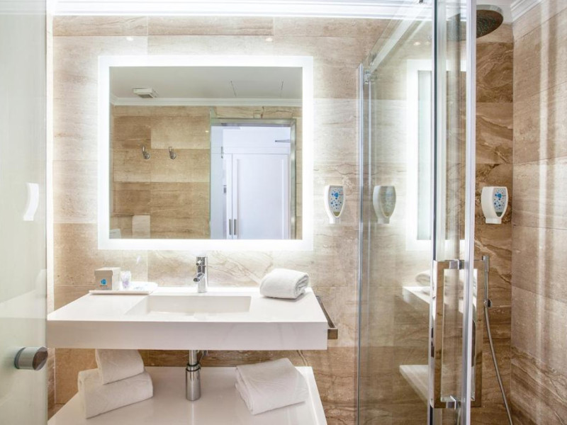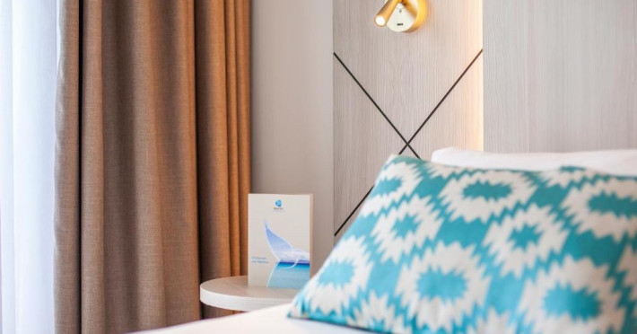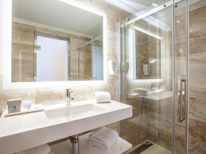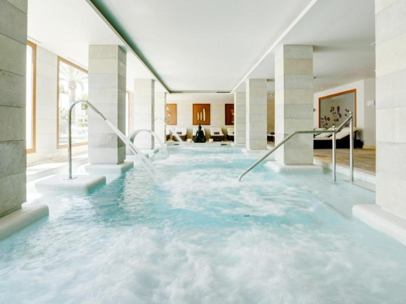 Oaspeții se pot bucura de centrul spa modern cu piscină interioară incălzită, saună și zonă de relaxare. Hotelul dispune de două piscine exterioare inconjurate de terase spațioase pentru plajă, un restaurant buffet cu preparate mediteraneene și internaționale, precum și un bar la piscină.