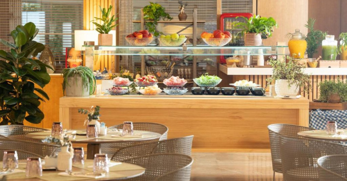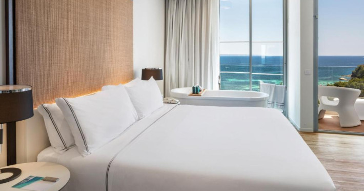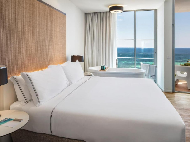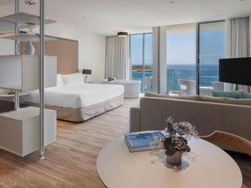 Camerele elegante beneficiază de vedere spre mare sau piscină, oferind un decor contemporan și dotări moderne. Oaspeții se pot bucura de două piscine exterioare, inclusiv una infinity cu vedere panoramică spre Mediterană, precum și de un restaurant principal cu preparate internaționale și specialități mediteraneene.