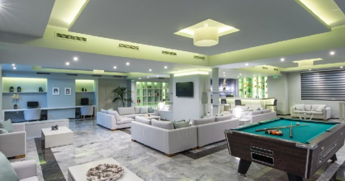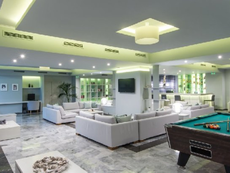 Hotelul dispune de restaurant, bar, snack-bar la piscina, piscina exterioara, piscina pentru copii amenajata cu sezlonguri (gratuite), biliard, tenis de masa, loc de joaca pentru copii, serviciu rent-a-car, WiFi (gratuit in spatiile publice), masaj, program de animatie, parcare.