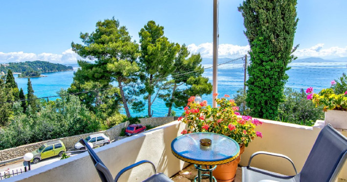 Localizare Situat in statiunea Perama, pe coasta estica a insulei Corfu. La aprox. 8 km de aeroport (transfer de aprox. 1015 min). La aprox. 6 km de orasul Corfu. Statie de autobuz locala in apropiere. Vedere spre Insula Pontikonisi (Insula Mouse).
