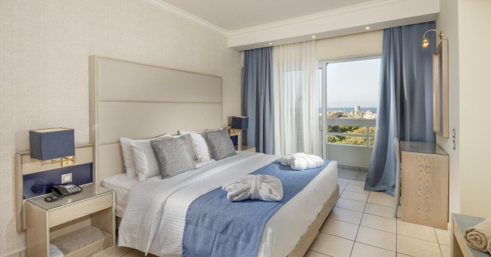 Localizare: in orasul Rodos, la aproximativ 50 m de plaja, 7 minute de mers pe jos de centrul vechi, 2.5 km de port si aprox 14 km de aeroport.Plaja este predominant de nisip iar sezlongurile si umbrelele sunt contra cost.