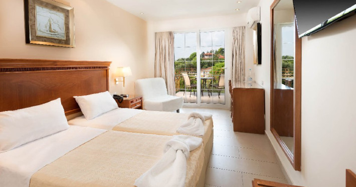 Dotari camere: Toate camerele hotelului dispun de aer conditionat (inclus in pret) si balcon cu vedere la mare, la munte sau la gradina, acces WiFi gratuit, TV, frigider, uscator de par, seif (contra cost). Curatenia in camere se face de 6 ori pe saptamana iar asternuturile si prosoapele sunt schimbate de 2 ori pe saptamana.