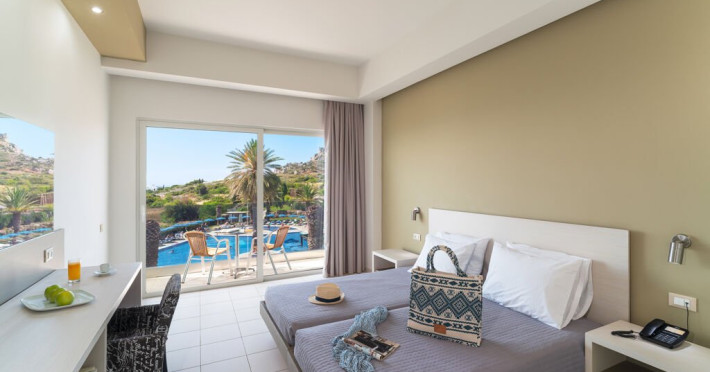Descriere: Hotelul este situat in zona linistita Ladiko si consta in 6 cladiri cu unul sau doua etaje, ce gazduiesc 215 camere cu vedere spre munte, spre gradina sau spre marea Mediterana. Localizare: Hotelul este localizat la 650 m de plaja din golful Ladiko, la 850 m de plaja din golful Anthony Quinn, la 2,5 km statiunea Faliraki si de terenul de golf, la 17 km de capitala Rhodos si 15 km de aeroportul din Rhodos. Dotari camere: Cele 215 camere sunt de doua categorii: camere duble cu uz de single de 24 mp (max 1 pax) si camere duble de 24 mp (max 2+1 pax). Toate camerele sunt dotate cu aer conditionat (gratuit in perioada 15.06-20.09), wi-fi (cu plata), telefon, seif (cu plata), TV satelit, frigider, baie cu dus sau cada, uscator de par, balcon/terasa. Facilitati hotel: receptie 24 de ore, salon, sala vizionare TV, Wi-Fi cu plata in toate zonele hotelului, camera pentru bagaje, piscina, prosoape pentru piscina (cu depozit), sezlonguri si umbrele, transfer la plaja gratuit de 3 ori pe zi, restaurant, bar, snack bar la piscina, inchirieri de masini si biciclete, schimb valutar, gradina, parking, punct de prim ajutor, doctor (la cerere, contra cost).Facilitati pentru copii: pat pentru infanti (la cerere, gratuit), scaune speciale (la cerere, gratuit), servicii de babysitting (la cerere, contra cost), piscina, loc de joaca, sala cu jocuri, mini club, program de animatie. Activitati: sala de jocuri video (cu plata), aerobic, program de animatie zilnic, spectacole in fiecare seara, seara folclorica greceasca cu barbeque ( o data/saptamana), live music cu spectacol de dans ( o data/saptamana), discoteca (2-3 ori/saptamana), teren de tenis (cu plata), biliard (cu plata), darts, tenis de masa, volei de plaja, polo, centru SPA (cu plata), centru fitness (cu plata), masaj (la cerere, cu plata). Clasificare oficiala: 4 stele Pagina web: http://cathrinhotel.gr Nota informativa: pentru anumite facilitati, hotelul poate solicita taxe suplimentare; in momentul sosirii la hotel, solicitati receptiei sa va informeze cu exactitate asupra lor. Taxa de statiune obligatorie - se plateste la receptie