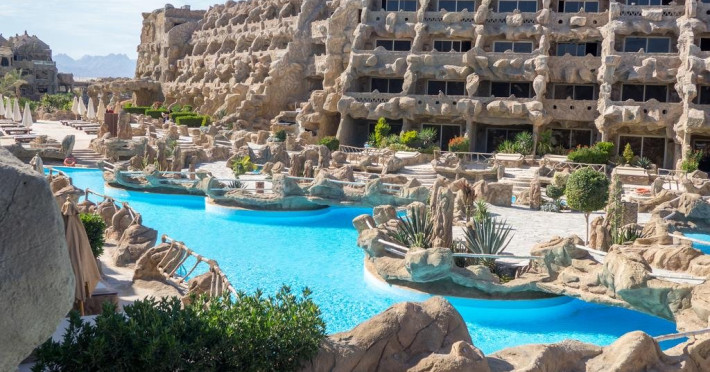 Descriere: Hotelul aflat in Hurghada la malul Marii Rosii are o tematica interesanta. Designul exterior al hotelului este intr-un stil unic de Epoca de Piatra, la fel si peisajul, cu lumini si plante integrate in jurul piscinei si in toate zonele publice.