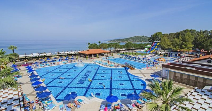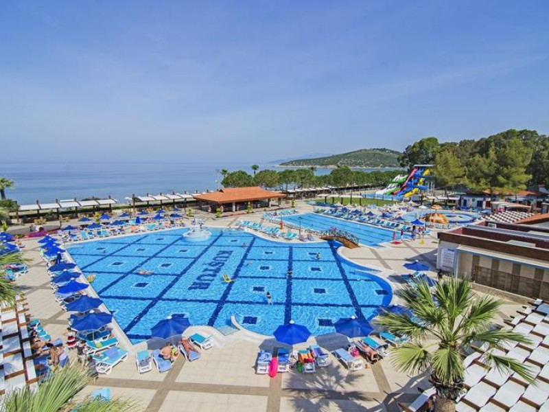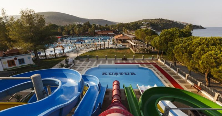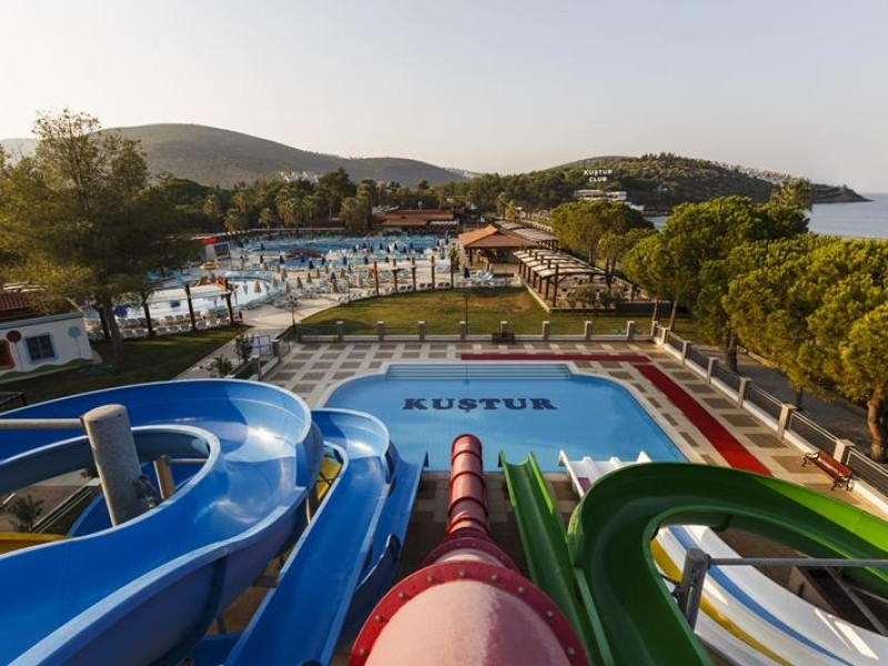 LOCATION; KuÅtur Club Holiday Village is an unique holiday club spread over a 170 acres of land where the turquoise blue of Aegean sea blends into a huge forest of pine trees with beautiful spring flowers that is proud of serving five-star Holiday Village since 1966. KuÅtur Club is only 4 km away from KuÅadası town center and distance to Izmirrsquo;s Adnan Menderes Airport is only 70 km.