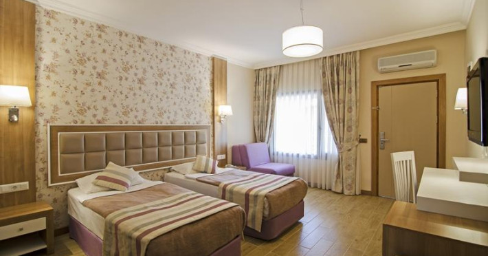 Room Information; Safety box, indivual air-conditioning, hair dryer, telephon, minibar, balcony or terrace, music througsath -TV.