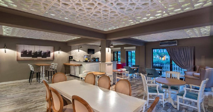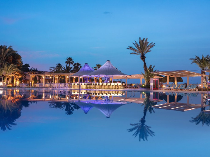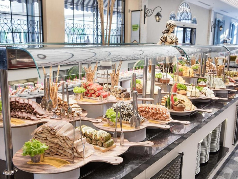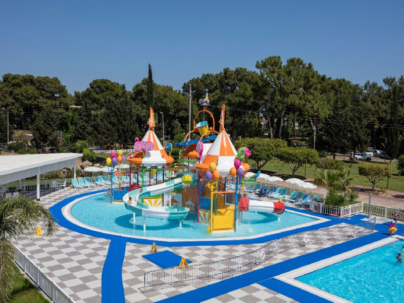 Hotelul pune la dispozitia oaspetilor: restaurant bufet, restaurante a la carte, patiserie, mai multe baruri, piscina exterioara, picina pentru copii, aquapark, miniclub.