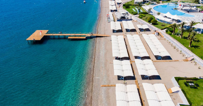 Hotelul renovat in 2022 se afla pe malul marii si are plaja cu nisip si pietricele.