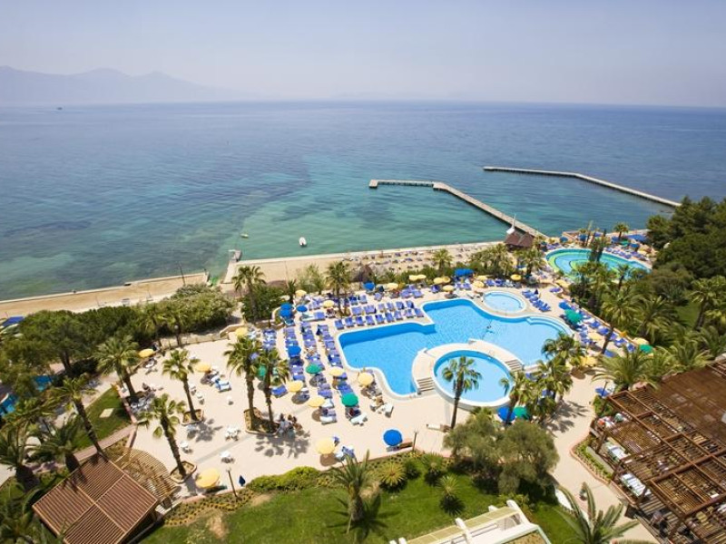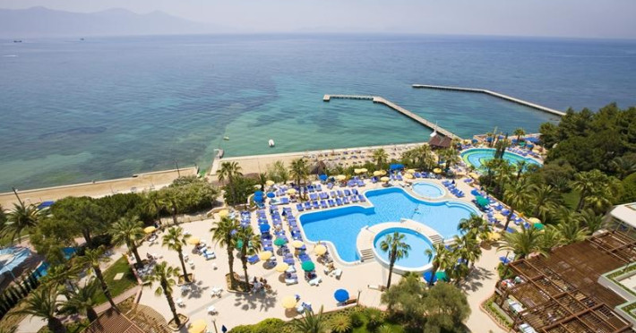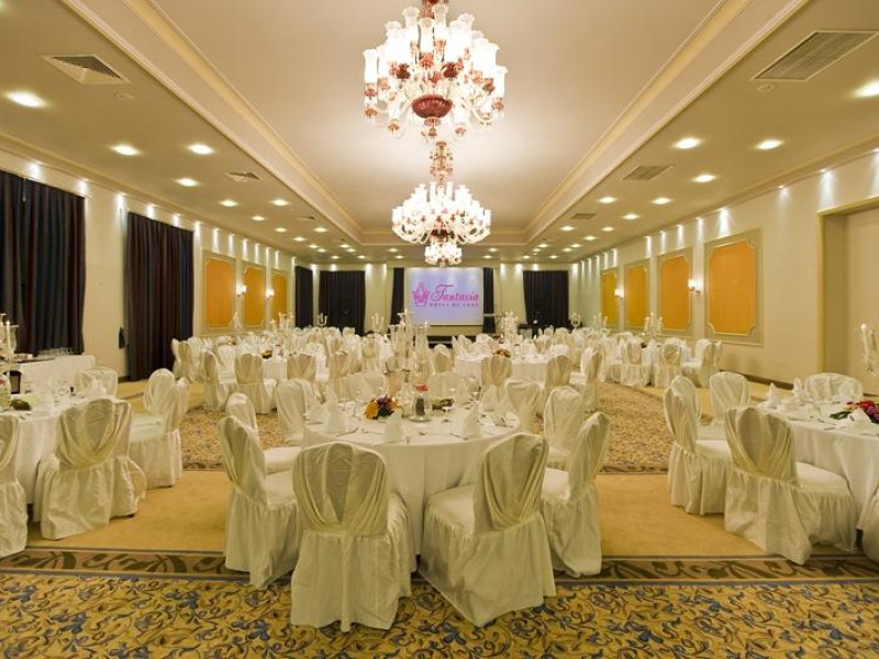 Fantasia Hotel De Luxe KuÅadası which is located in the distinguished district of Aegean region, KuÅadası, serve you the guests with is world standardized quality and its location close to antique city#39;s Ephesia, Prienne, Miletus, Didyma and church of Virgin Marry House. Eight Floor main building that attentively constructed to preserve natural structure. Fantasia Hotel de Luxe KuÅadası gives you choices with full of entertainment like is beach 150 meters long , its wharf which yachts 2 meters of depth can approach, swimming pools and indoor heated swimming pool which can be used both in summer and winter.