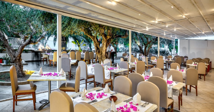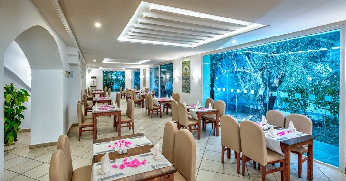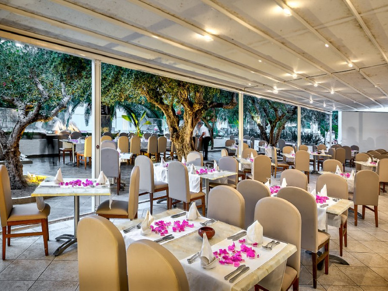 Restaurante: restaurant principal Les Oliviers, bar cu gustari, bar la piscina, bar principal, bar pe plaja (deschis iunieseptembrie).