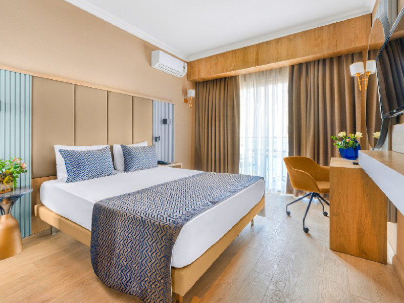 Dotari camere: Hotelul dispune de 58 de camere dotate cu: aer conditionat, TV, minibar, balcon, baie cu cabina de dus, telefon. Camerele standard Land View sunt dotate in plus cu fierbator, aparat de cafea, seif, masa de calcat.