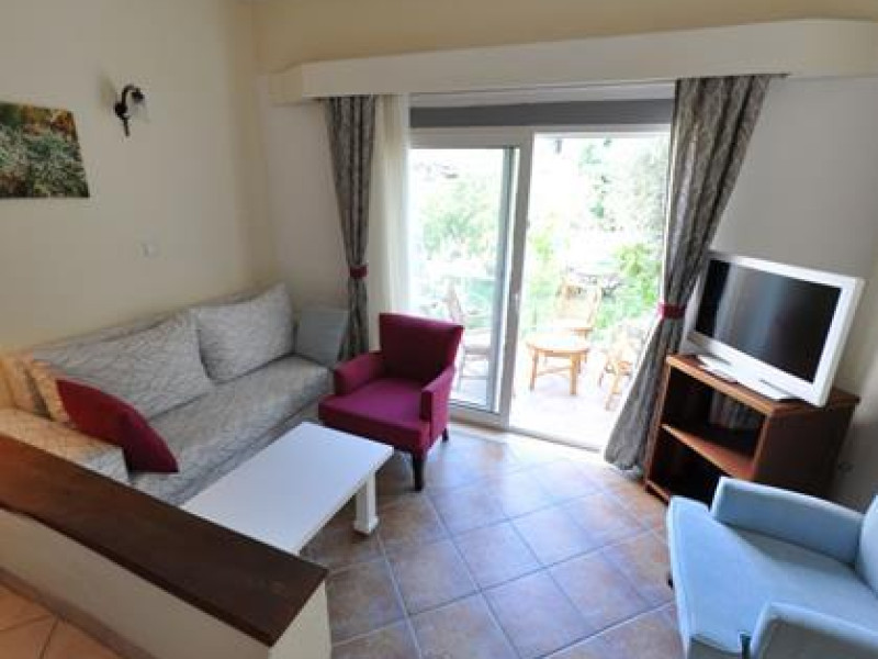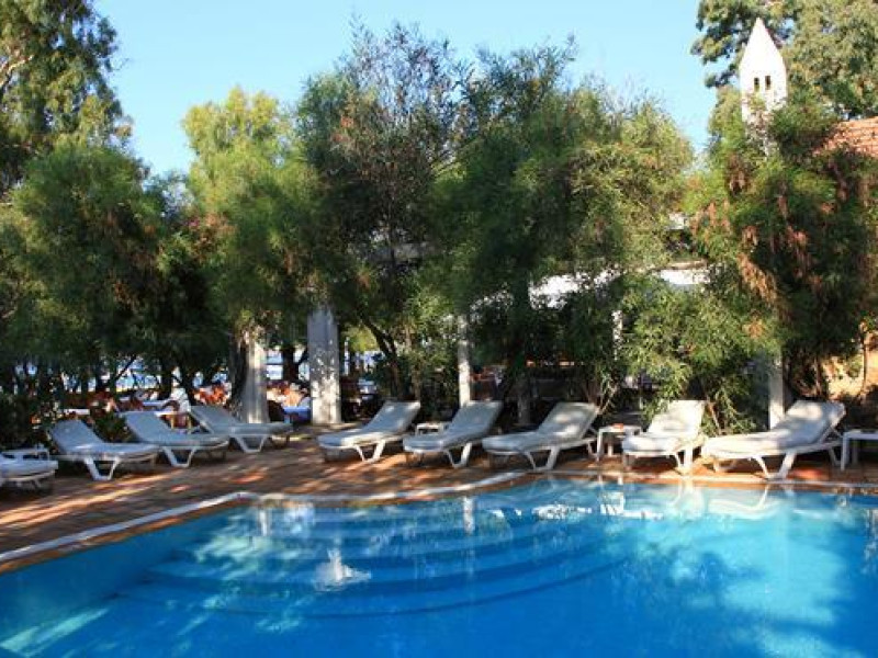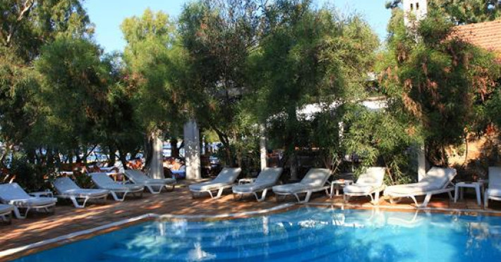 Set in a beautiful beach front location , the Okaliptus Hotel is low-rise , comfortable accomodation . Covered in purple bougainvillea with attractive gardens and a comfortable seating area , and well maintained throughout this hotel offers a lively and friendly atmosphere which will appeal to groups, couples and families.