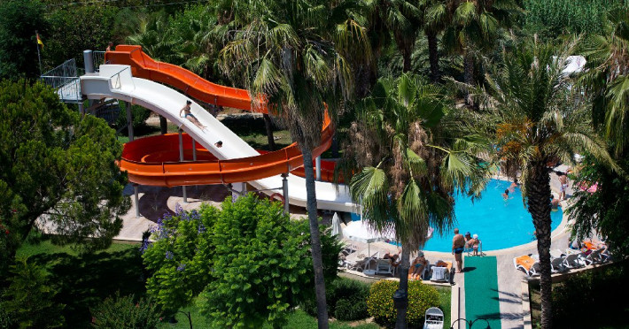 Descriere: Hotelul Aventura Parc inconjurat de palmieri, isi intampina oaspetii cu o gradina verde, piscine si tobogane iar plaja cu nisip este situata langa frumosul resort.