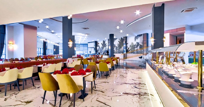 Restaurante: 2 restaurante, 3 baruri (lobby bar deschis 24h, bar la piscina si bar pe plaja)