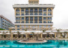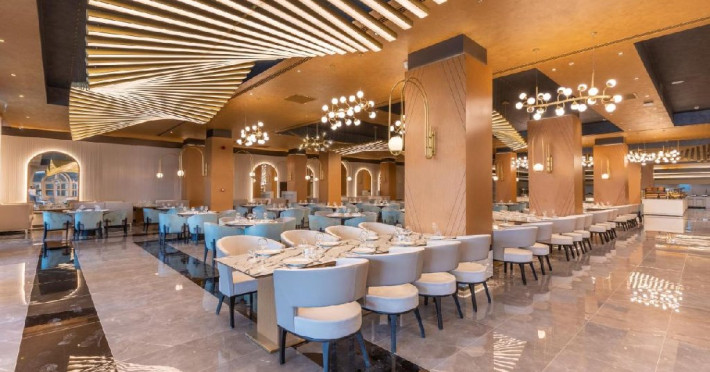 Facilitati hotel: Hotelul pune la dispozitia oaspetilor: restaurant bufet, restaurante a la carte, snack bar, gelaterie, patiserie, cafenea, mai multe baruri, inclusiv la piscina, la plaja si pe ponton, piscina exterioara si interioara, piscina pentru copii, aquapark, animatie, spectacole seara, muzica live, aerobic, centru Spa, Wi-Fi gratuit, tenis de masa.