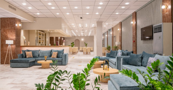 Facilitati generale: receptie doar 16 ore, restaurant, mancare la pachet, camera de jocuri cu billiard si tenis de masa, magazine, piscine, bar la piscine.
