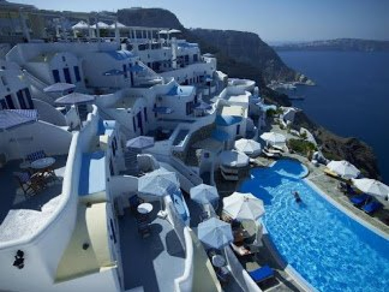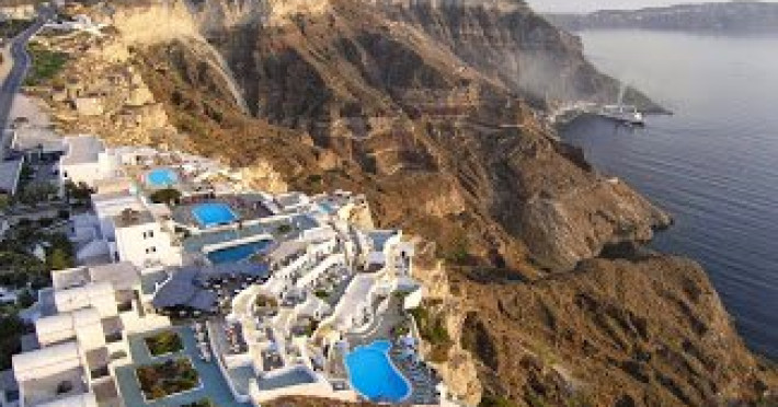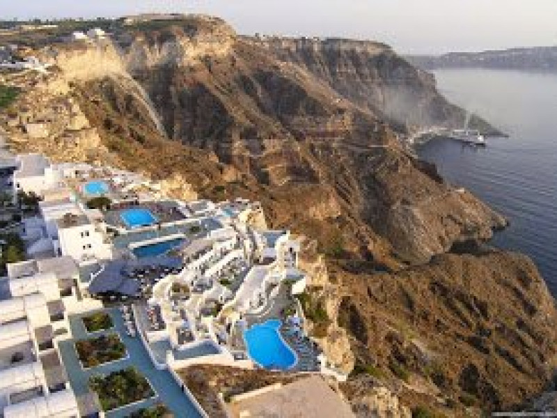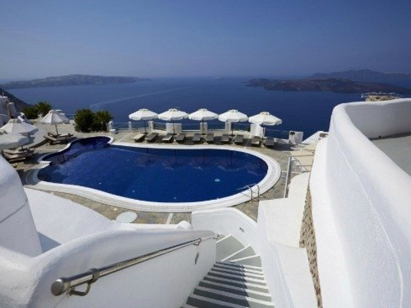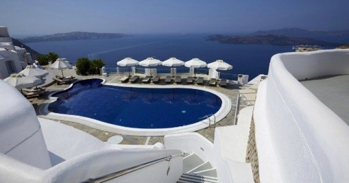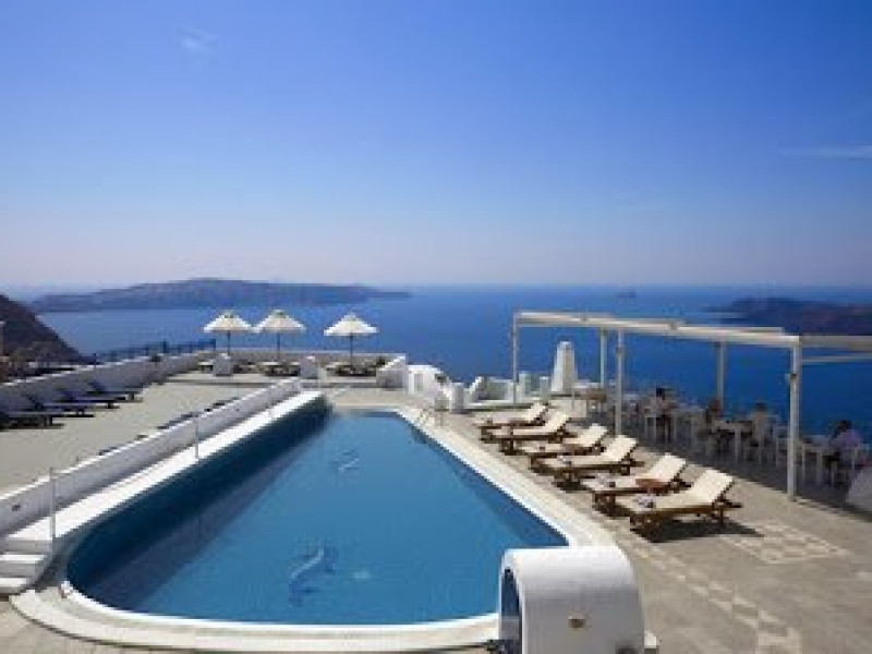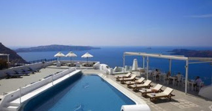 Descriere HOTEL VOLCANO VIEW: Avand o locatie excelenta, pe marginea unei stanci, hotelul Volcano View de 5 stele ofera un restaurant cu vedere la caldera si 3 piscine cu vedere la vulcan, la mare si la faimosul asfintit din Santorini. Tip masa: Mic dejun. Localizare HOTEL VOLCANO VIEW: Hotelul este situat pe marginea calderei, la 2 km de capitala Fira si la 5 km de aeroport. Plaja: Plaja cu pietricele se afla la 6 km distanta de hotel. Dotari camere: Hotel Volcano View dispune de 93 de unitati de cazare si vile redecorate in 2011, dotate cu baie proprie, uscator de par, produse cosmetice pentru baie, aer conditionat, TV satelit, seif, internet wi-fi gratuit, prosoape pentru plaja si piscina, balcon sau terasa. Facilitati HOTEL VOLCANO VIEW: Hotelul dispune de restaurant, bar, piscine, bar la piscina, internet wi-fi, mini market, camera de bagaje, parcare. Servicii cu plata: masaj, baby sitting, spalatorie/calcatorie, doctor. Clasificarea oficiala: 5* Web: www.volcano-view.com Nota informativa: Pentru anumite facilitati din hotel sau din camera, hotelierul poate solicita taxe suplimentare. In momentul sosirii la hotel solicitati receptionerului sa va informeze cu exactitate asupra lor. Taxa de statiune obligatorie - se plateste la receptie: - 0,5 euro/camera/noapte la hotel 1-2*; - 1,5 euro/camera/noapte la hotel 3*; - 3 euro/camera/noapte la hotel 4*; - 4 euro/camera/noapte la hotel 5*; - 0,5 euro/noapte/apartament sau studio la unitatile de cazare tip apartamente si studiouri