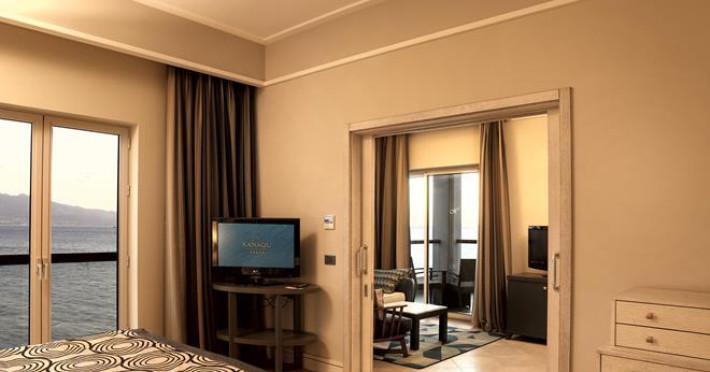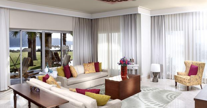 EXECUTIVE SUITE : in garden Two-bedroom suite with entrance hall , dressing room, furnished balcony, bedroom with kingsize bed, living room with full parlour and dining area for parties of four, bathroom with shower, toilet, double sink, jacuzzi, bedroom with twin beds and bathroom with toilet, sink, shower.