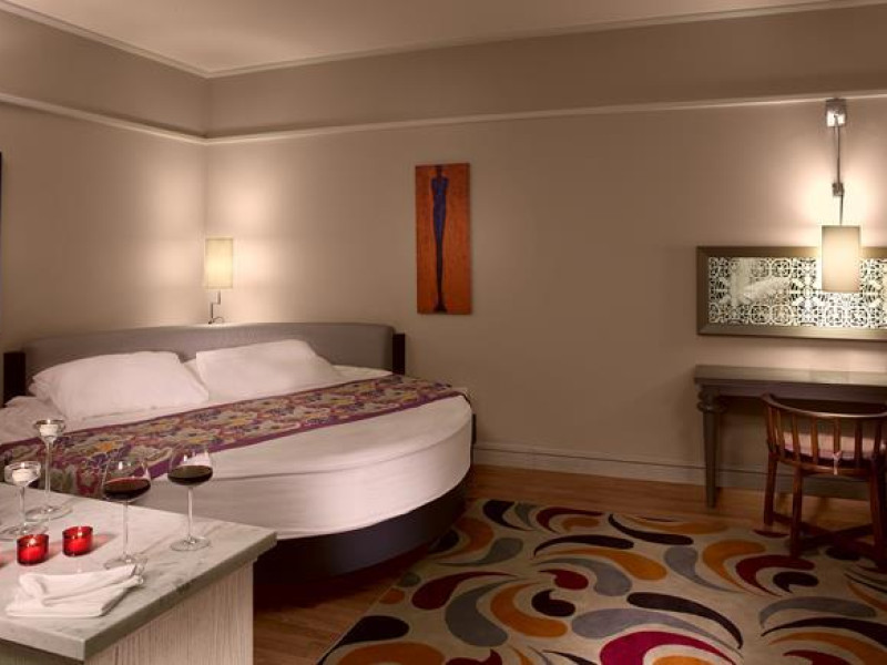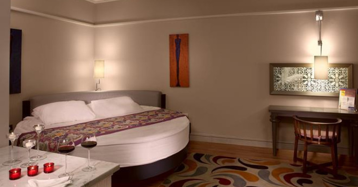 ROMANCE SUITE : in Manor House One-bedroom suite with entrance hall, dressing room, furnished balcony, large bedroom with circular kingsize bed, full parlour, large bathroom with shower, toilet, double sink, Jacuzzi.